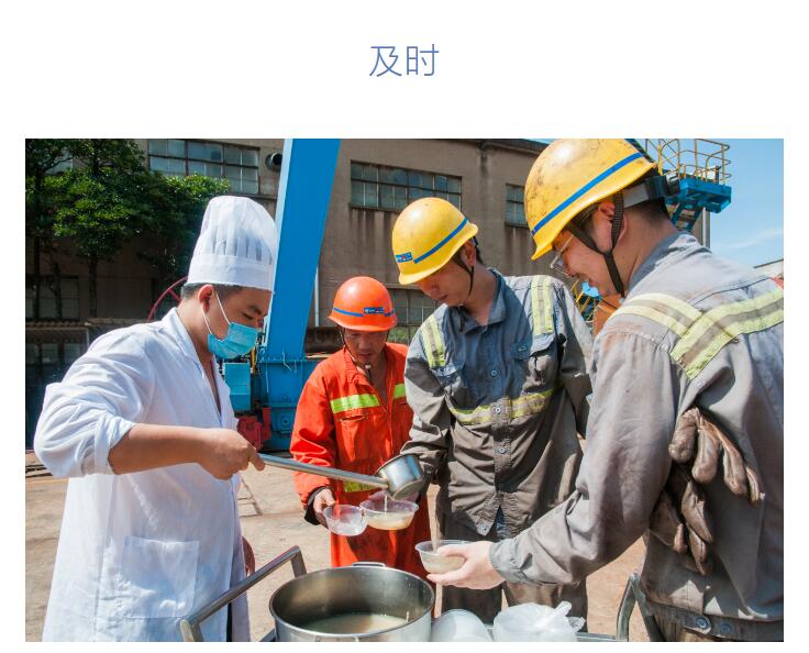“来得真及时啊!快40℃的天气,还是绿豆汤解渴又降暑!”宁波舟山港股份有限公司北仑矿石码头分公司机修分部修理三班班长张逢祥说。7月7日,该公司工会将一桶桶冰镇绿豆汤送入修理场地,给现场挥汗如雨的电焊工们送去丝丝清凉。图为厨师将冰镇绿豆汤分送给修理工人。(蒋晓东 曹玉美)
