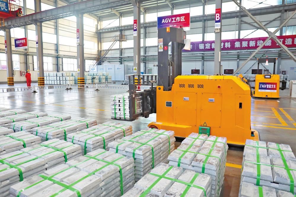11月18日,豫光锌业机器人正在将锌锭打包码垛。