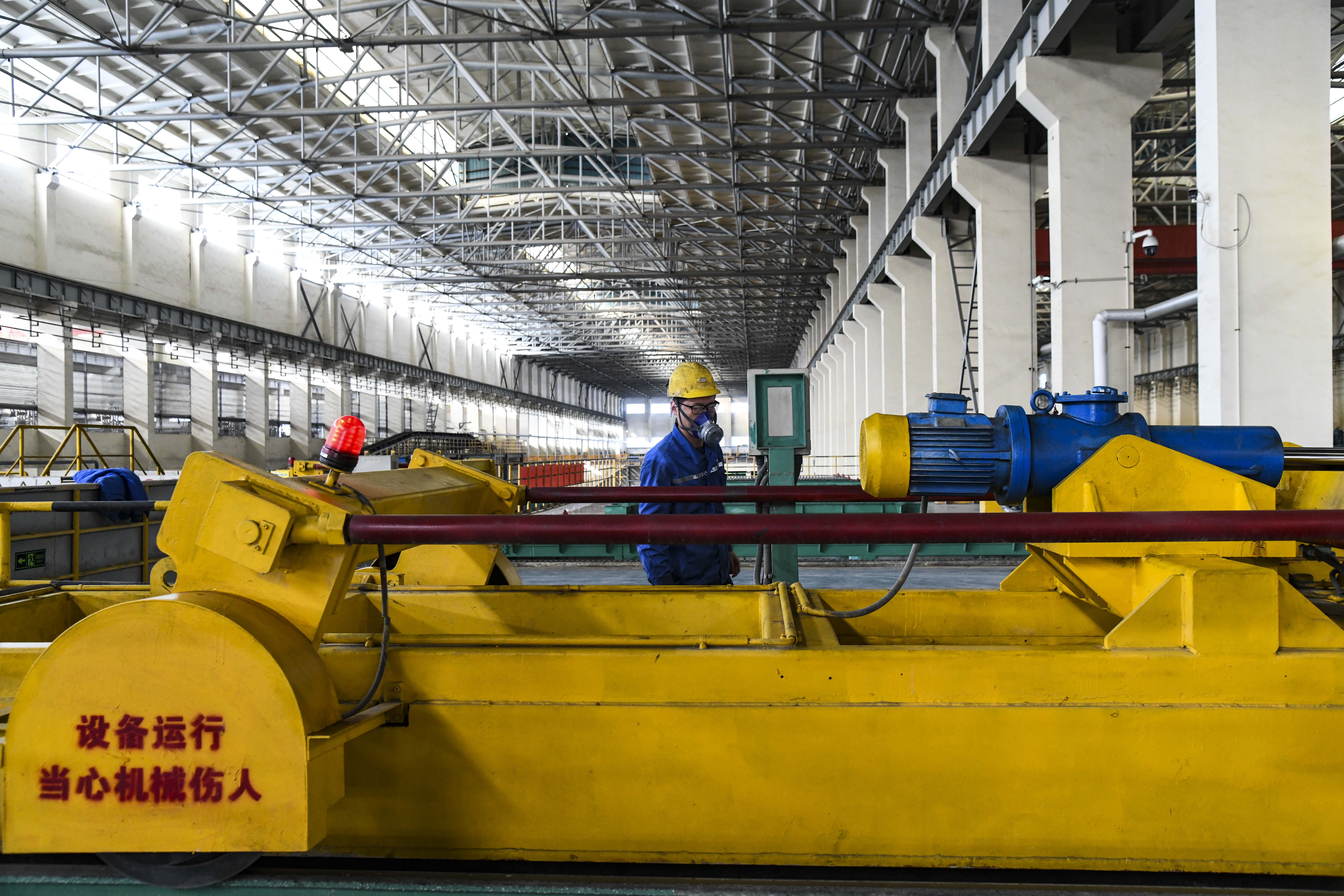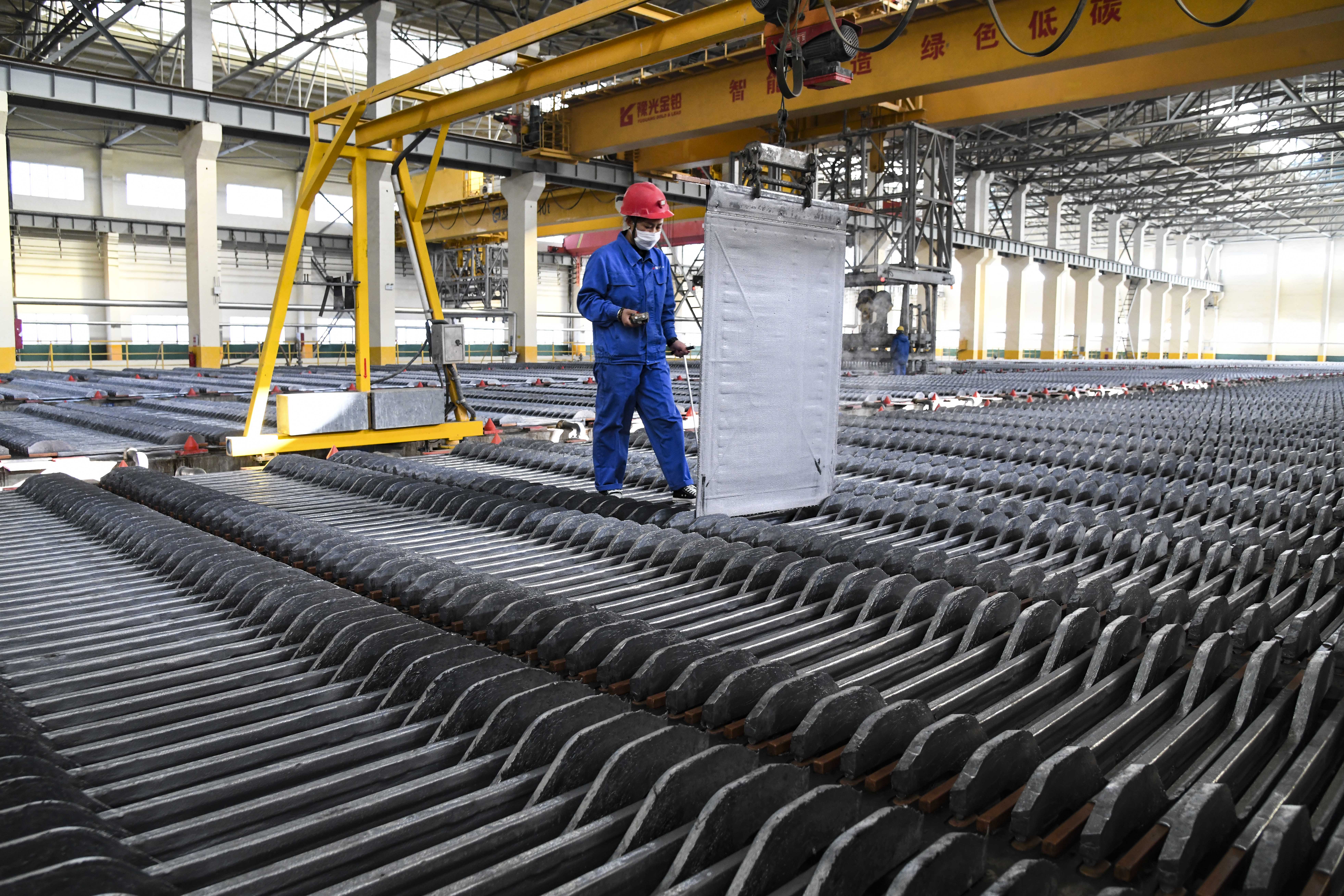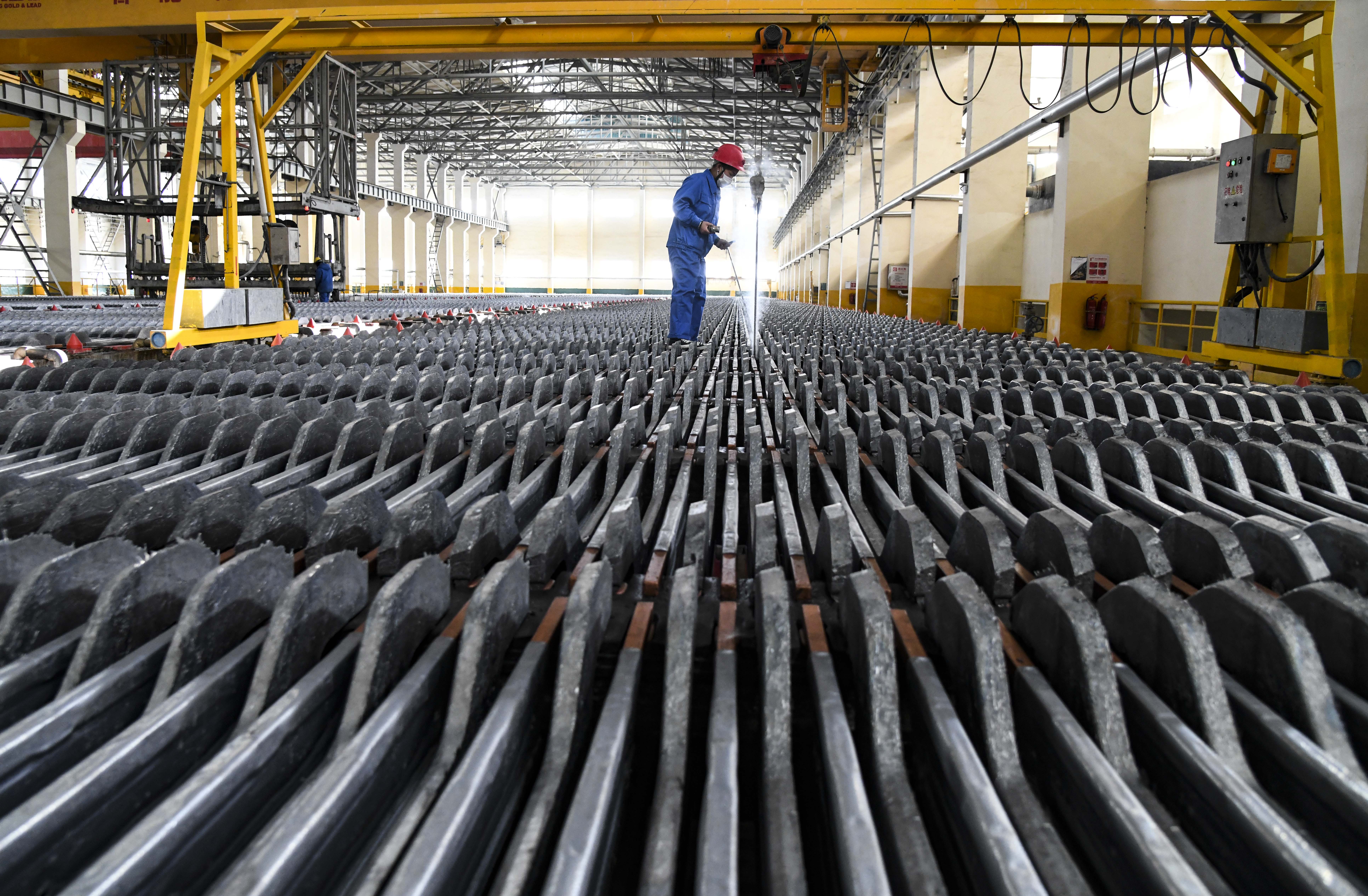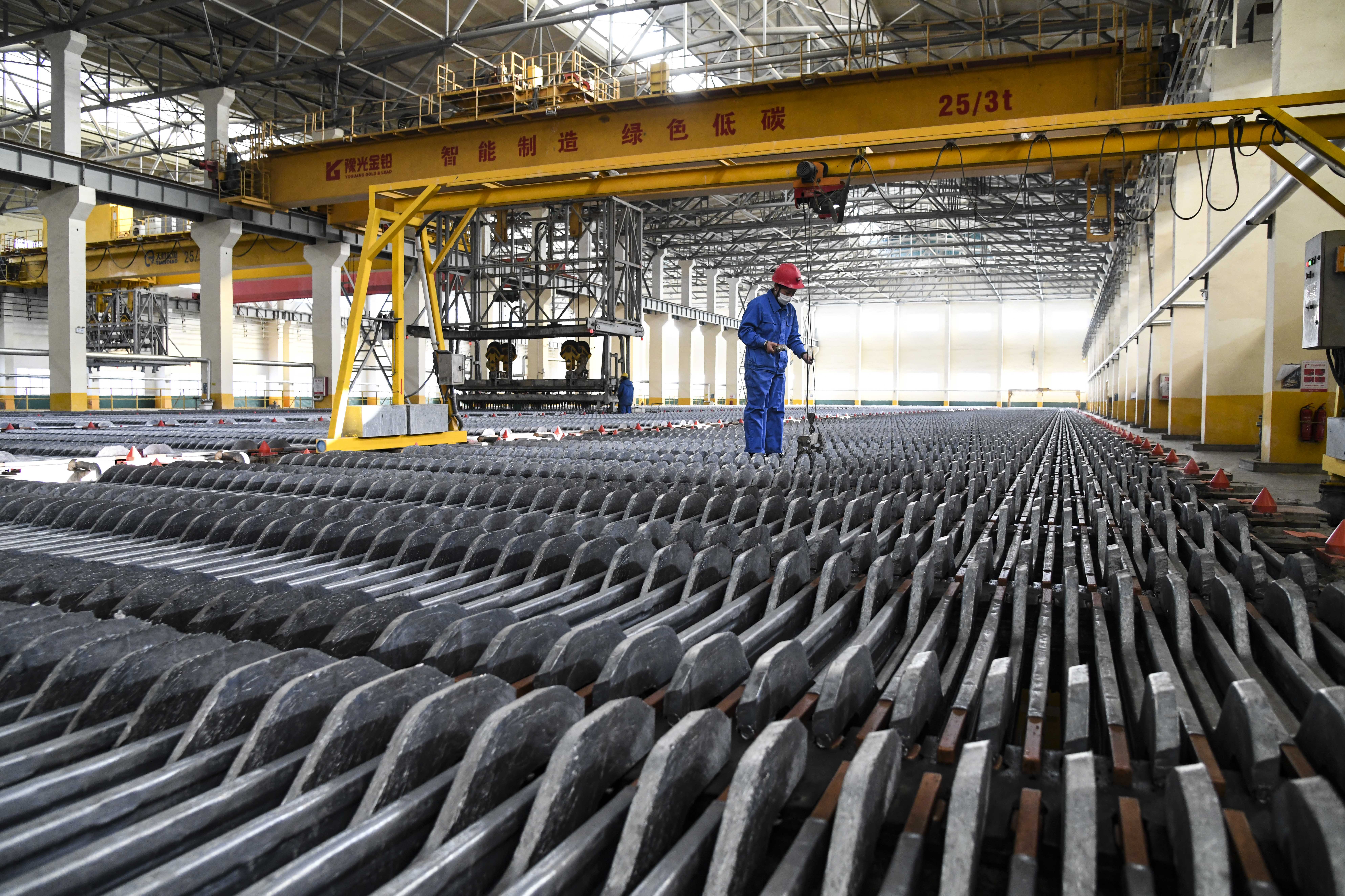 2月5日,工人在河南豫光金铅股份有限公司铅电解车间作业。